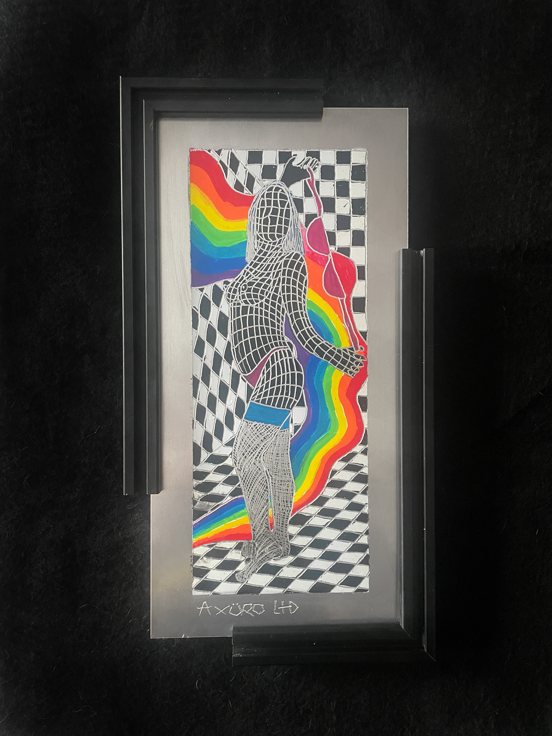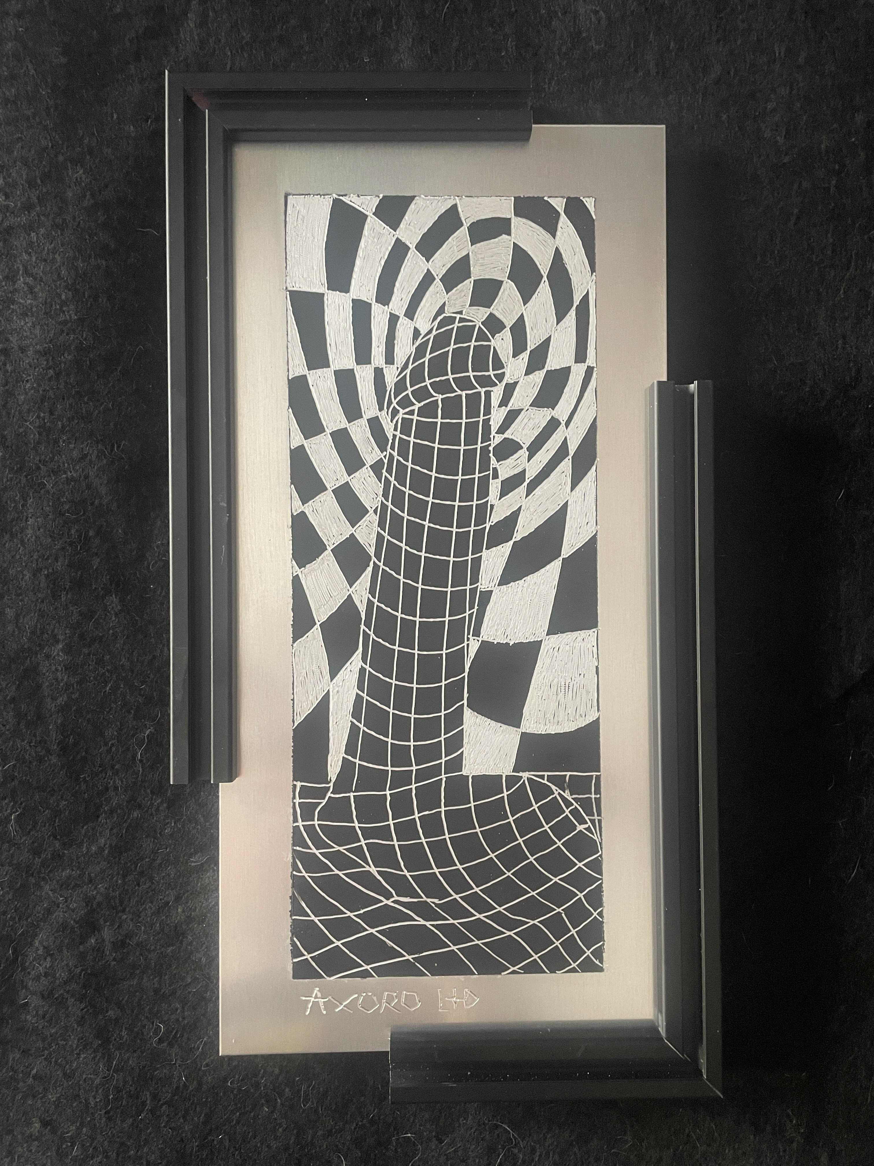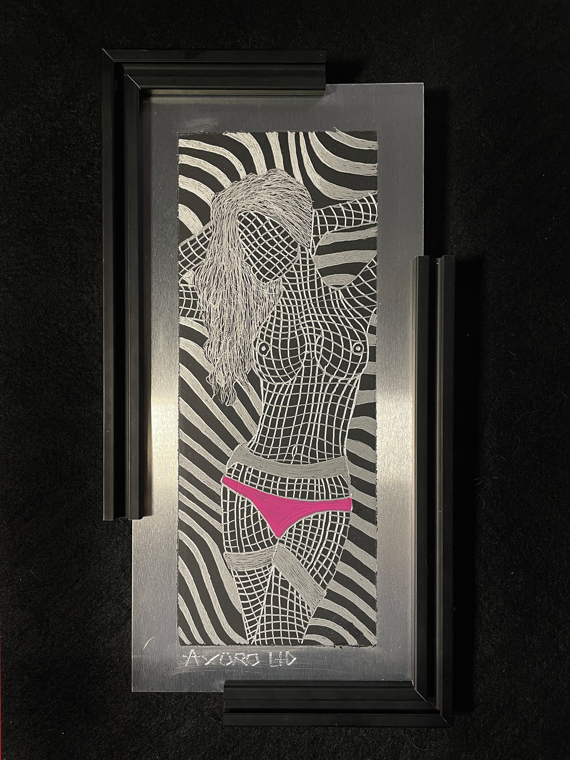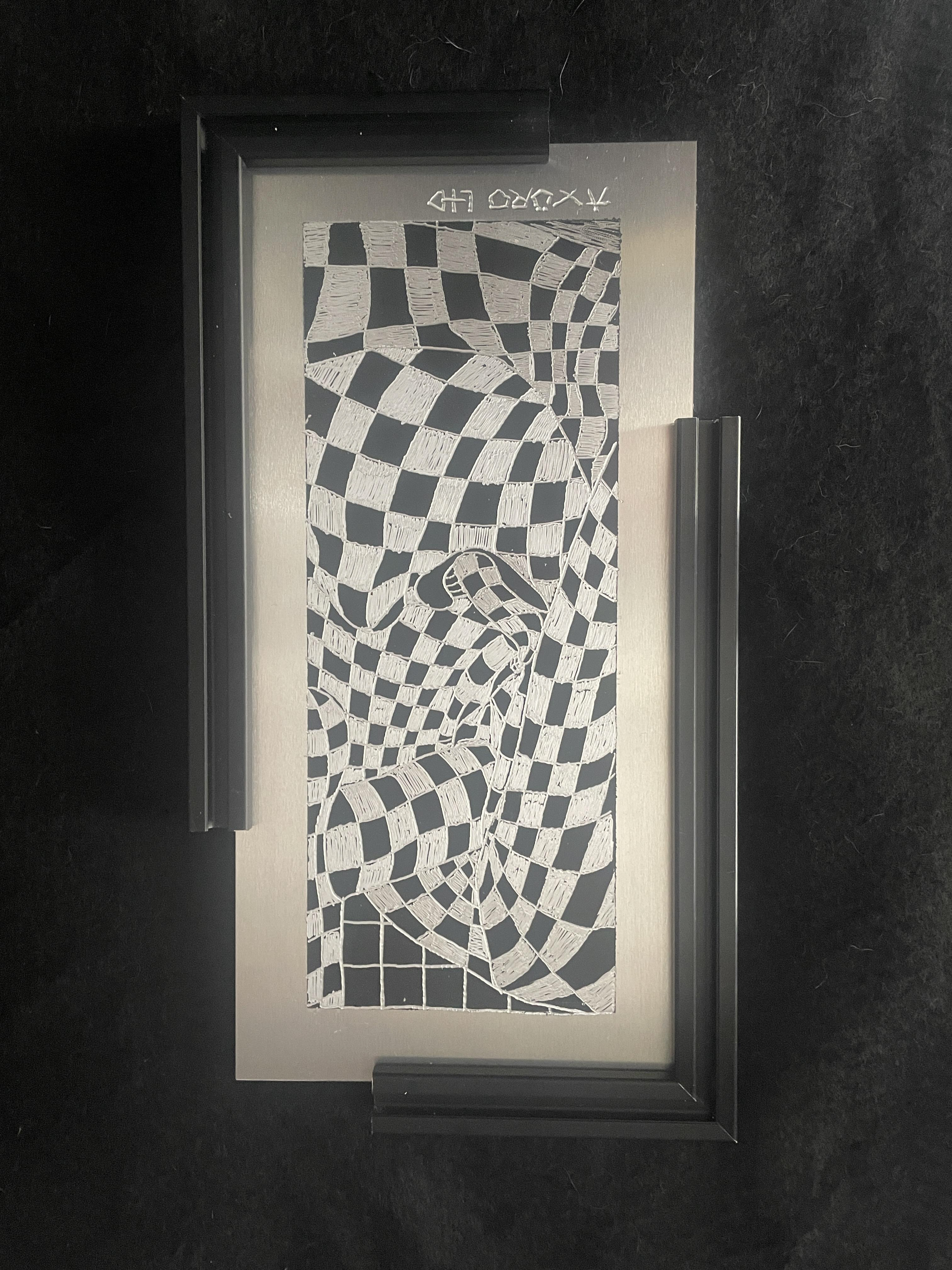 Artwork on 6"x12" aluminum panels made using spraypaint, paint markers, & hand engraving. Framed using aluminum extrusion.